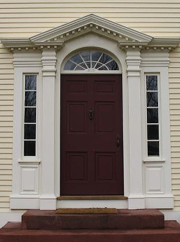 One of the most exciting front entrance treatments ever built in New England is the Connecticut Valley Doorway. With their scroll, flat or triangular pediment, fluted pilasters topped with hand carved rosettes and pedestal mouldings, these masterfully crafted pieces of woodwork are an artform within themselves. We produce, to the most exacting detail, all of the important doorway types built during the 18th century. The impression these entrances create as the focal point of the exterior of your colonial home expresses, without a doubt, the quality of craftsmanship to be found within.